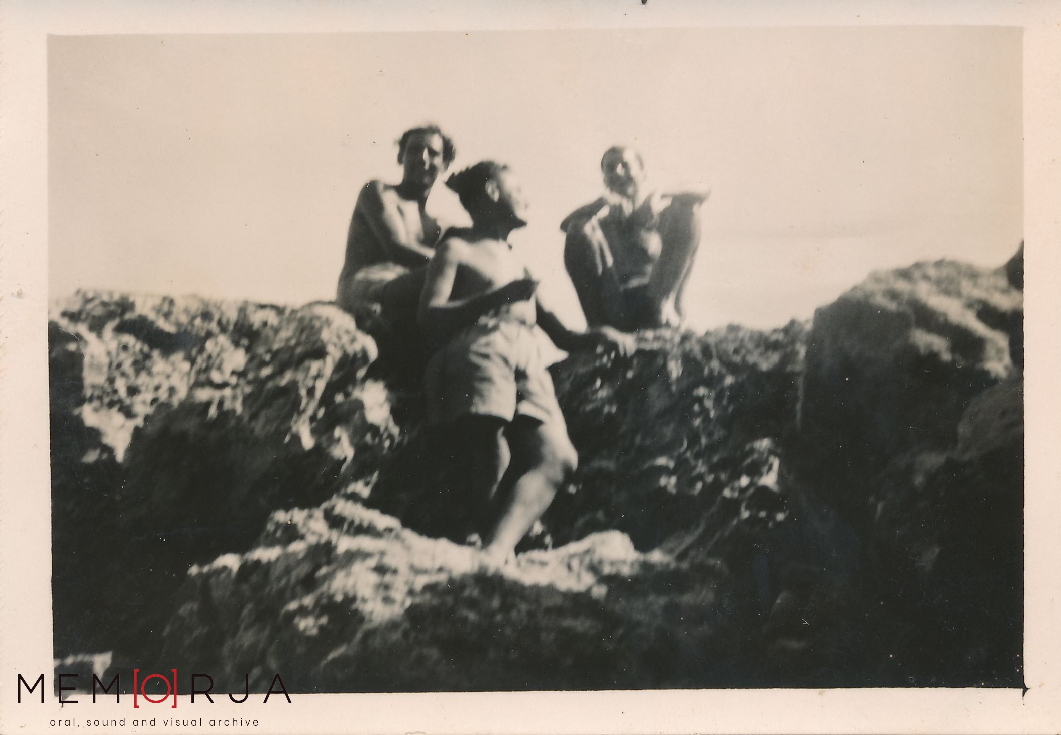 On the reverse: Censinu Caruana (left) + two friends at Ghar Lapsi. ~1945-1950