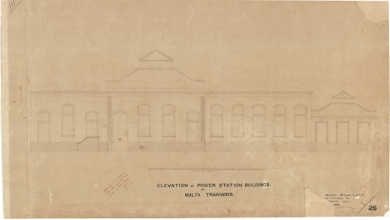 Item 62832 - Elevation of power station buildings of Malta Tramways