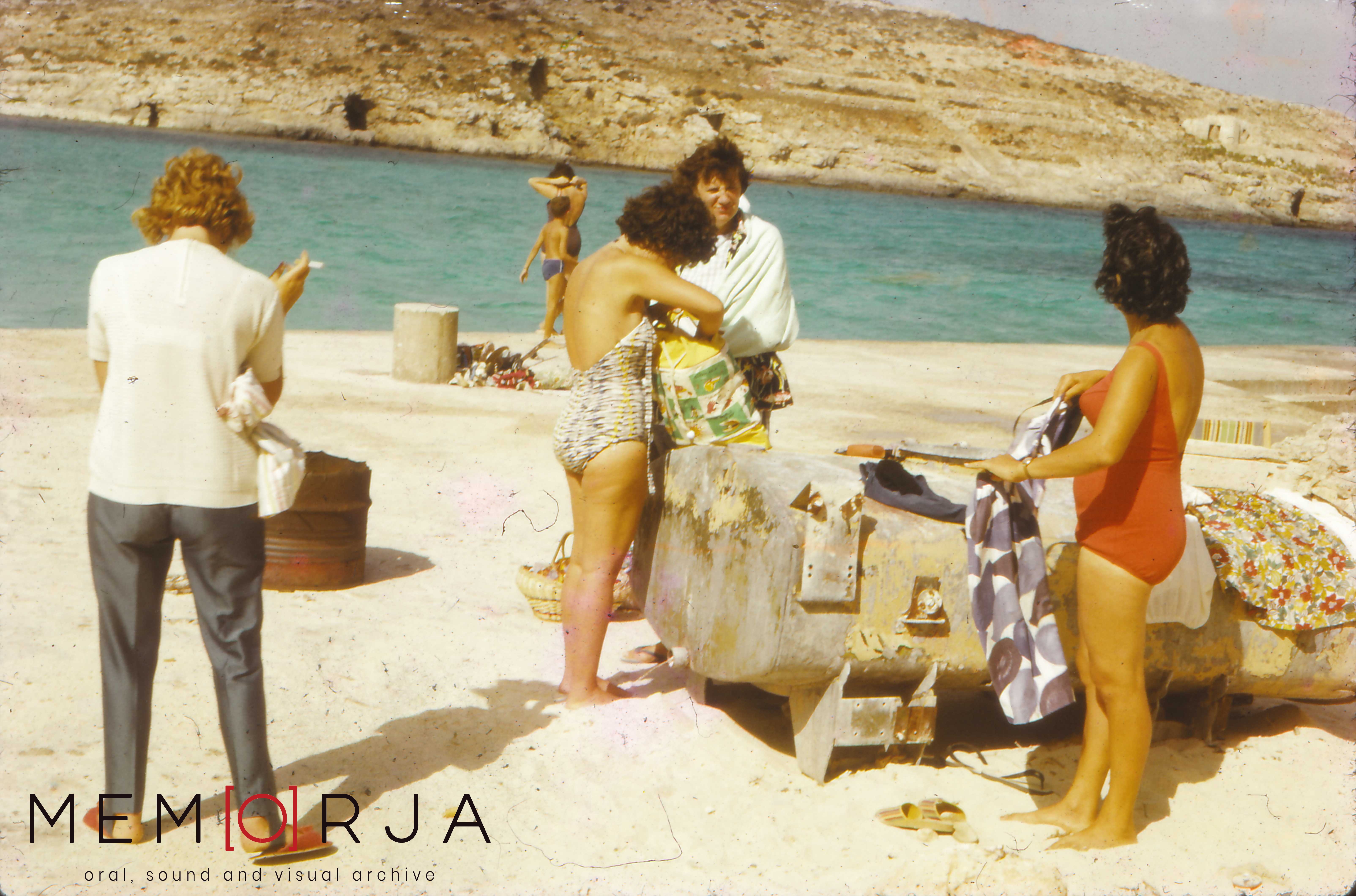 Loulou Mifsud Bonnici (Maurice's wife) is wearing the a bathing suit.