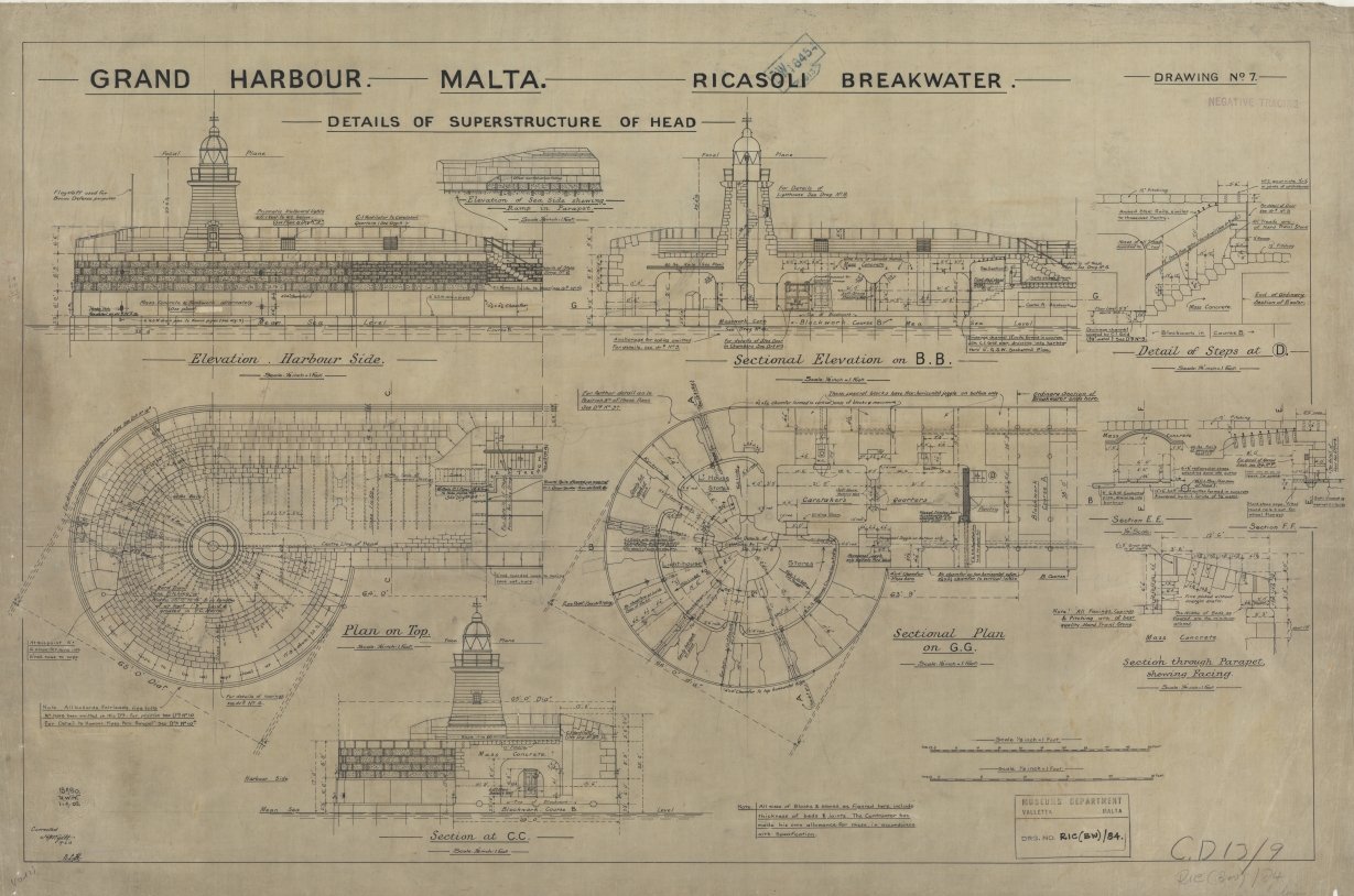 Grand Harbour, Malta - Ricasoli Breakwater - Details of Superstructure of Head