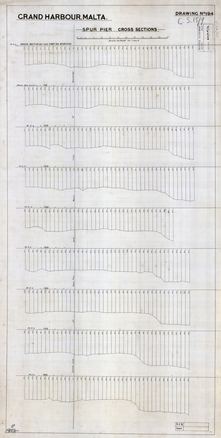 Grand Harbour, Malta - Spur Pier - Cross Sections