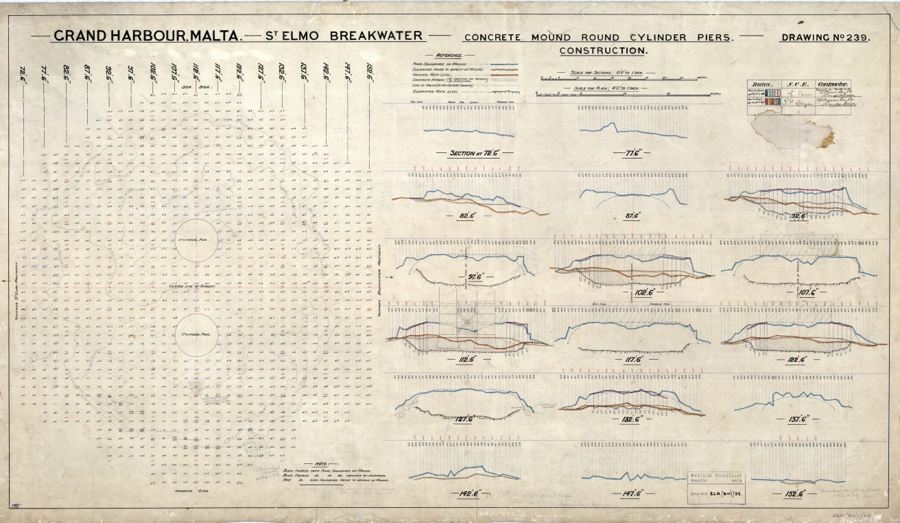 Grand Harbour, Malta - St Elmo Breakwater - Concrete Mound Round Cylinder Piers - Construction