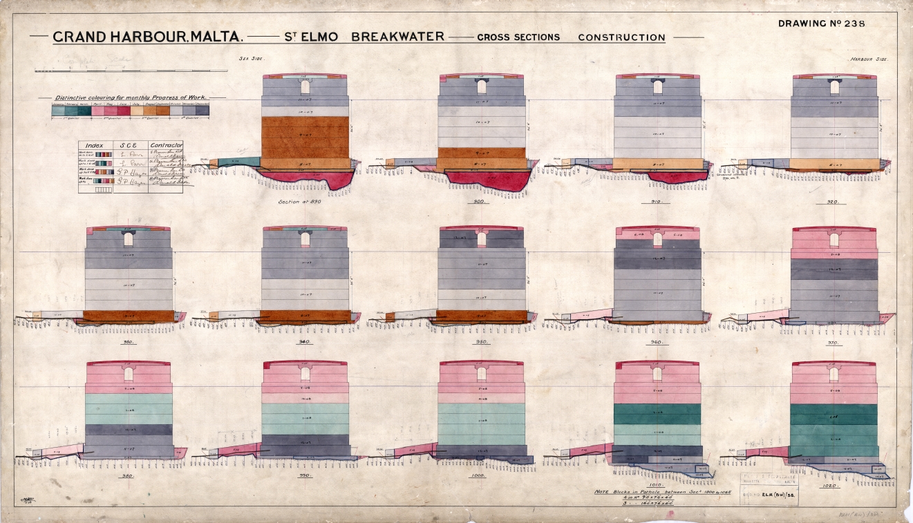 Grand Harbour, Malta - St Elmo Breakwater - Cross Sections - Construction