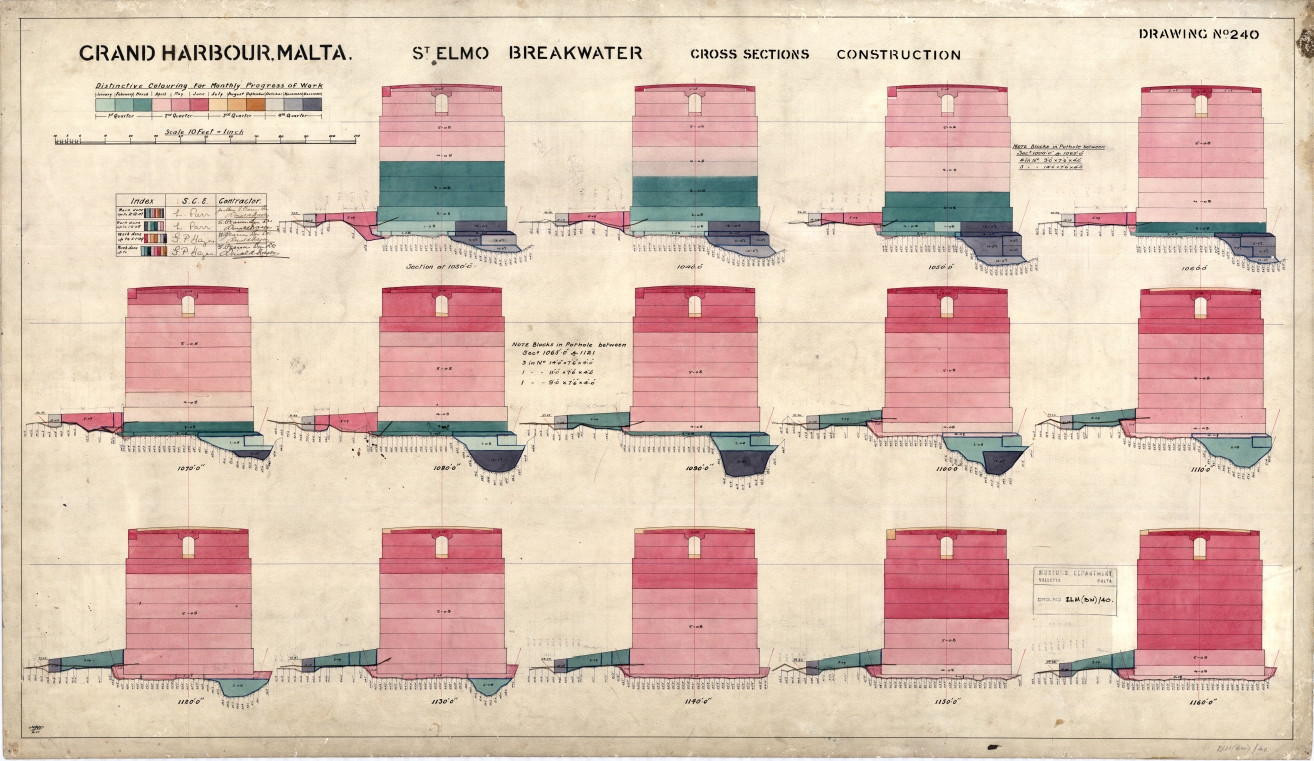 Grand Harbour, Malta - St Elmo Breakwater - Cross Sections - Construction