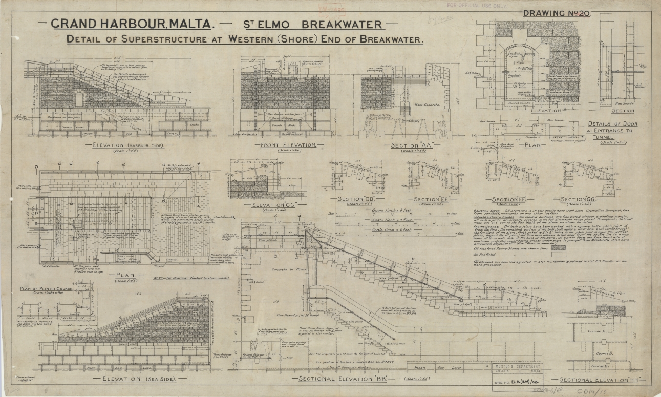 Grand Harbour, Malta - St Elmo Breakwater - Detail of Superstracture at Western (Shore) End of Breakwater
