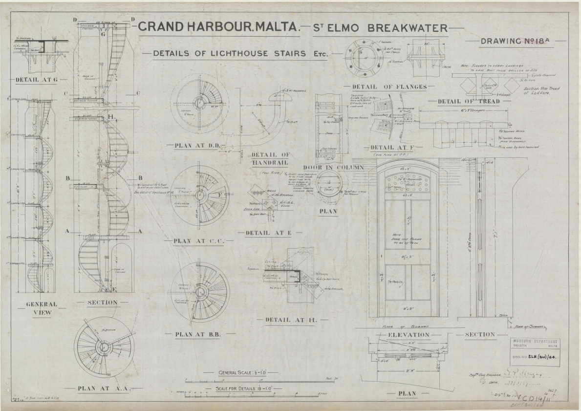 Grand Harbour, Malta - St Elmo Breakwater - Details of Lighthouse Stairs Etc.