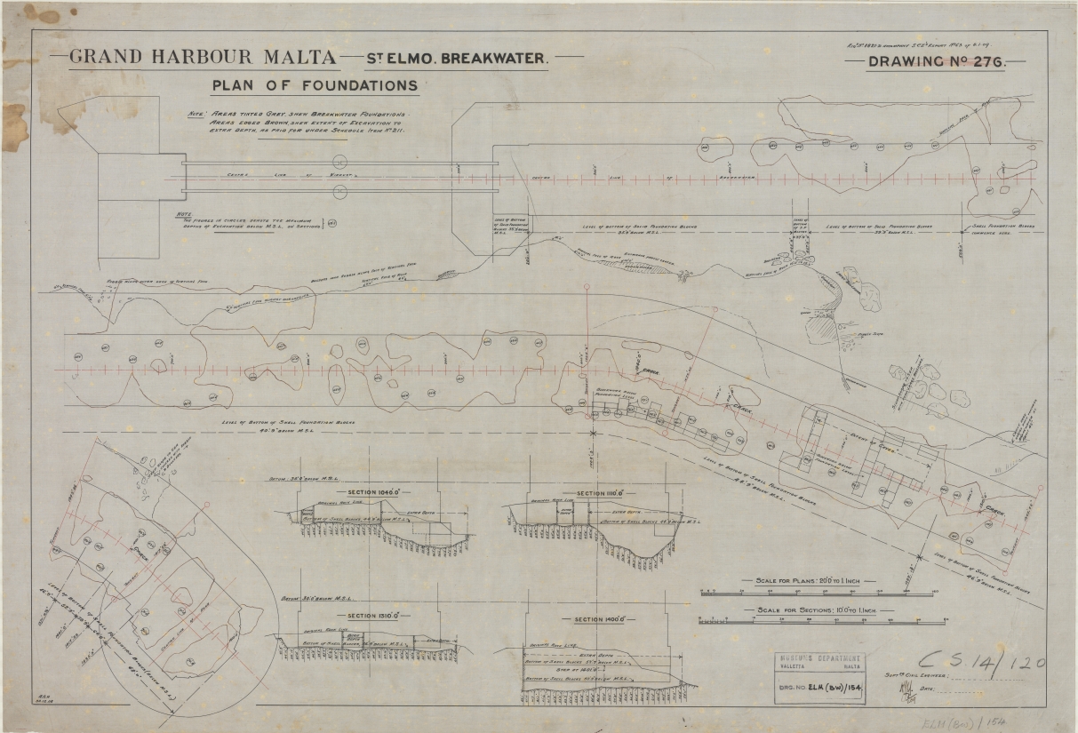 Grand Harbour Malta - St Elmo Breakwater - Plan of Foundations