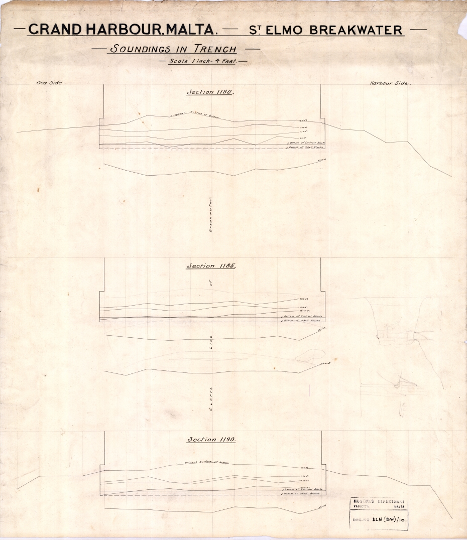 Grand Harbour Malta - St Elmo Breakwater - Soundings in Trench
