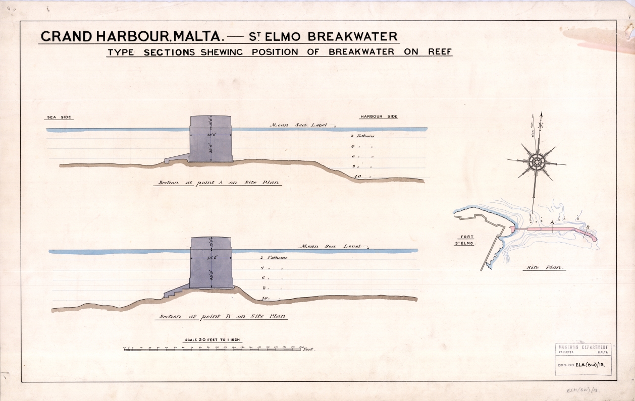 Grand Harbour Malta - St Elmo Breakwater - Type Sections shewing Position of Breakwater on Reef