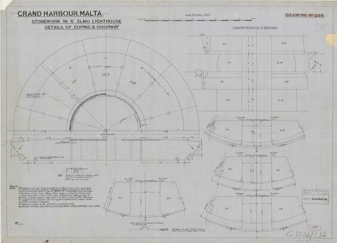 Grand Harbour, Malta - Stonework in St Elmo Lighthouse - Details of Coping & Doorway