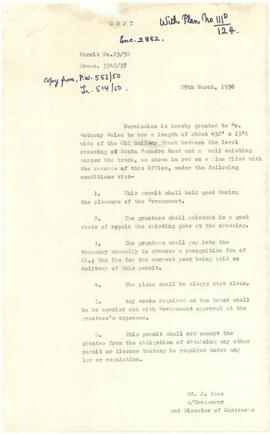 Grant of permission to Mr Anthony Galea to use part of the old railway track between the level crossing at Santa Vennera Road and wall existing across the track showing in PDM 62731. Page 2