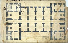 Ground Plan North Pavilion (in black ink handwriting); R.N. Hospital - East Wing - Basement Plan (written in pencil maybe as a correction)