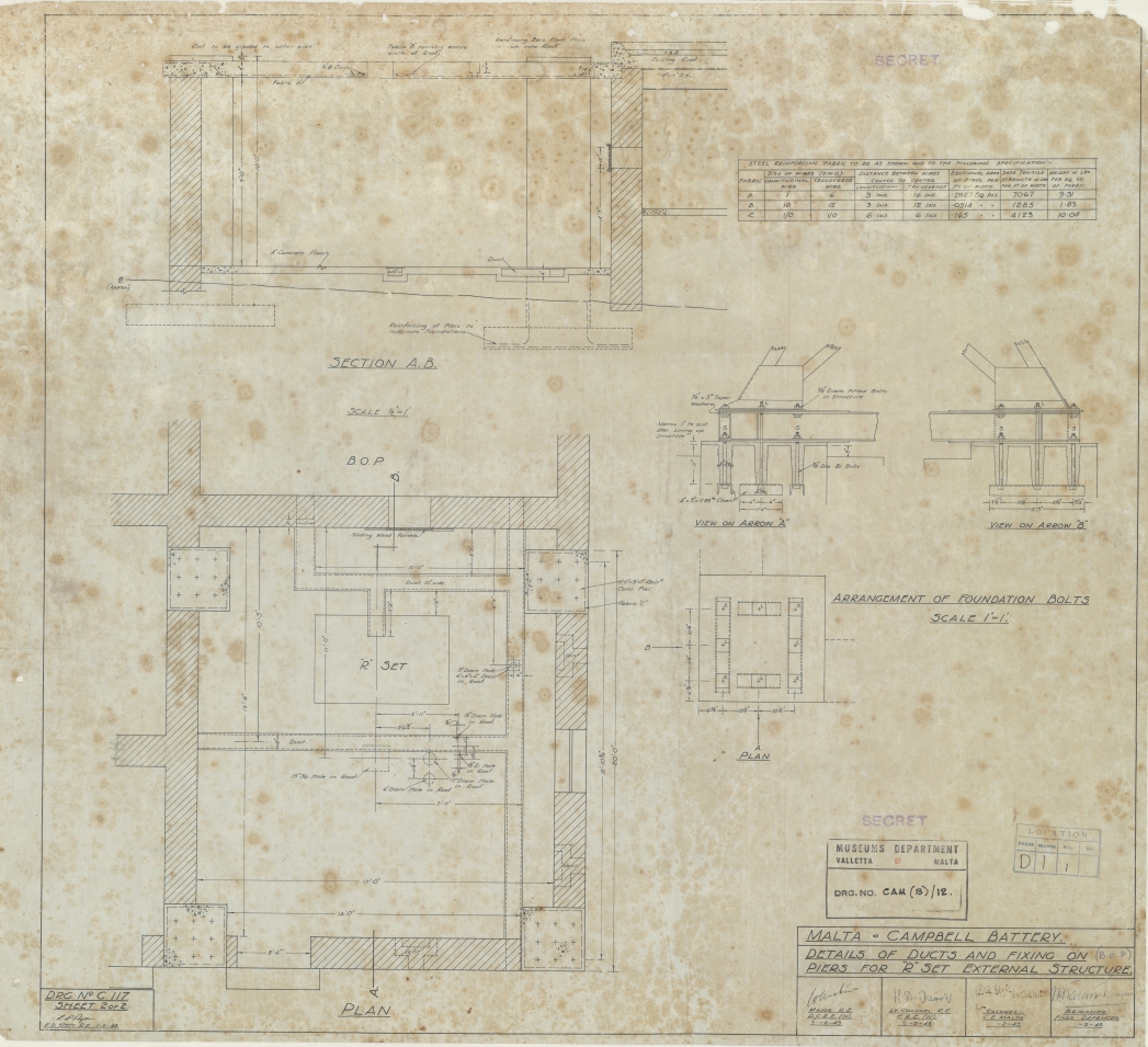 Malta - Campbell Battery - Details of Ducts and fixing on (B.O.P.) Piers for "R" Set external Structure