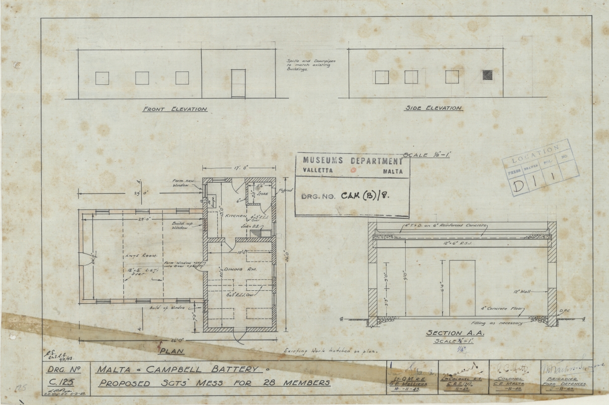 Malta - Campbell Battery - Proposed Sgts' Mess for 28 members