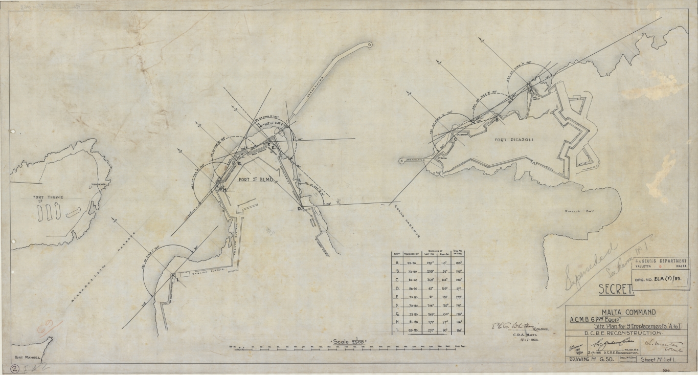 Malta Command - A.C.M.B. 6 Pdr Equipt. - Site Plan for 9 Emplacements 'A' to '1' - D.C.R.E. Reconstruction
