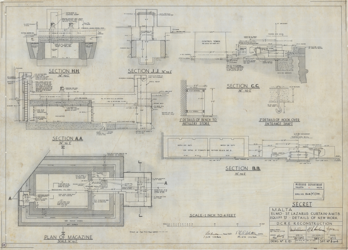 Malta - Elmo - St. Lazarus Curtain - A.M.T.B. - Equipt 'D' - Details of new Work; D.C.R.E. Reconstruction