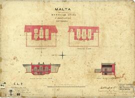MALTA - Plan & Sections of - Barrack Store - St. James Curtain - Cottonera