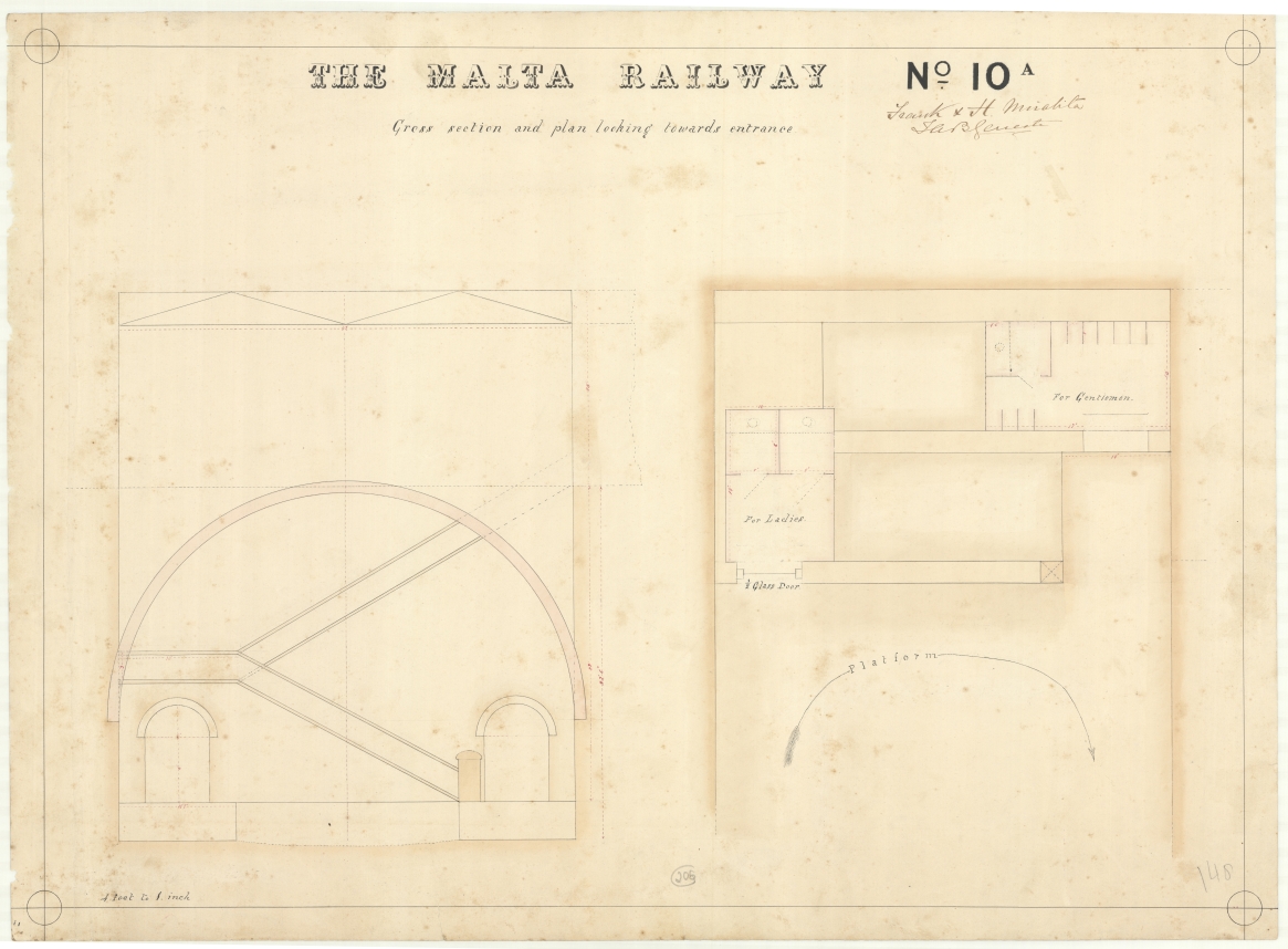 Item 63399 - Malta Railway - Cross section and plan looking toward entrance