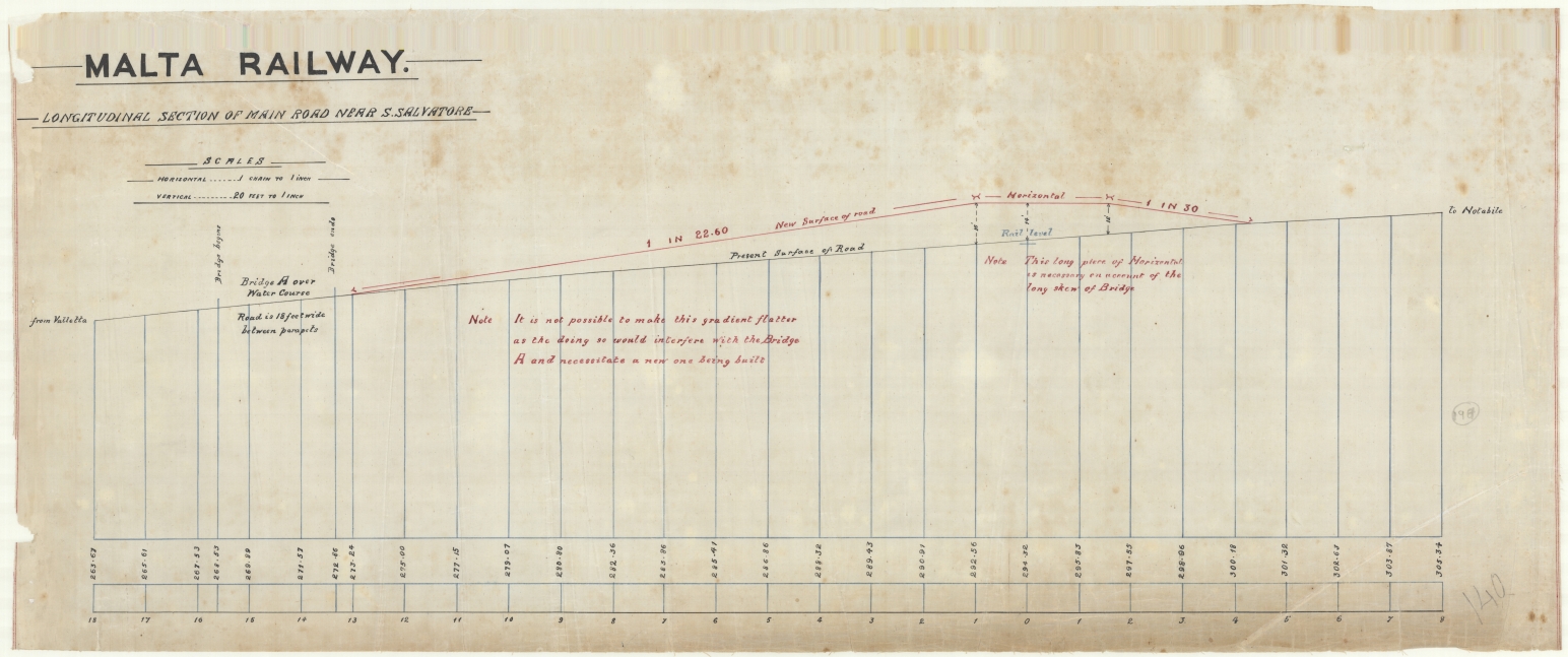 Ingliż » Malta Railway - Longitudinal Section of Main Road near S. Salvatore station.