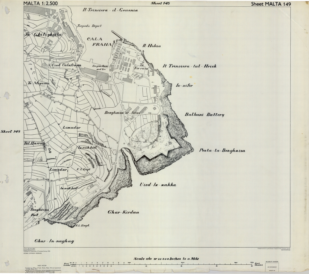 It-Trinciera-il-Geuenija; Ta Ghiligheila; CALA FRANA; Il-Hobza; Uied Calafrana; It Trinciera-tal-Hriek; Ta Miguma; Ix-Xifer; Benghaisa or Irras; Balbani Battery; Limudar; Tal Harrub; Ix xakkiet;Ponta-Ta-Benghaisa; Uied Ix-Xakka;Benghaisa Fort; Ghar-Kirdua