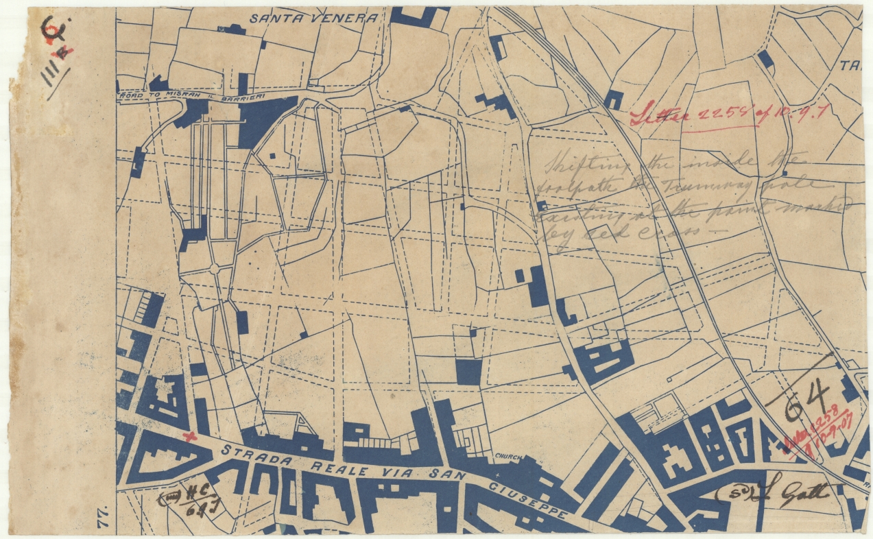 Map of St. Vennera showing in red the point where it is proposed to shift the tramway pole to the inside of the footpath.
