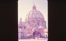 The dome in the background is of the Papal Basilica of Saint Peter.