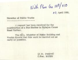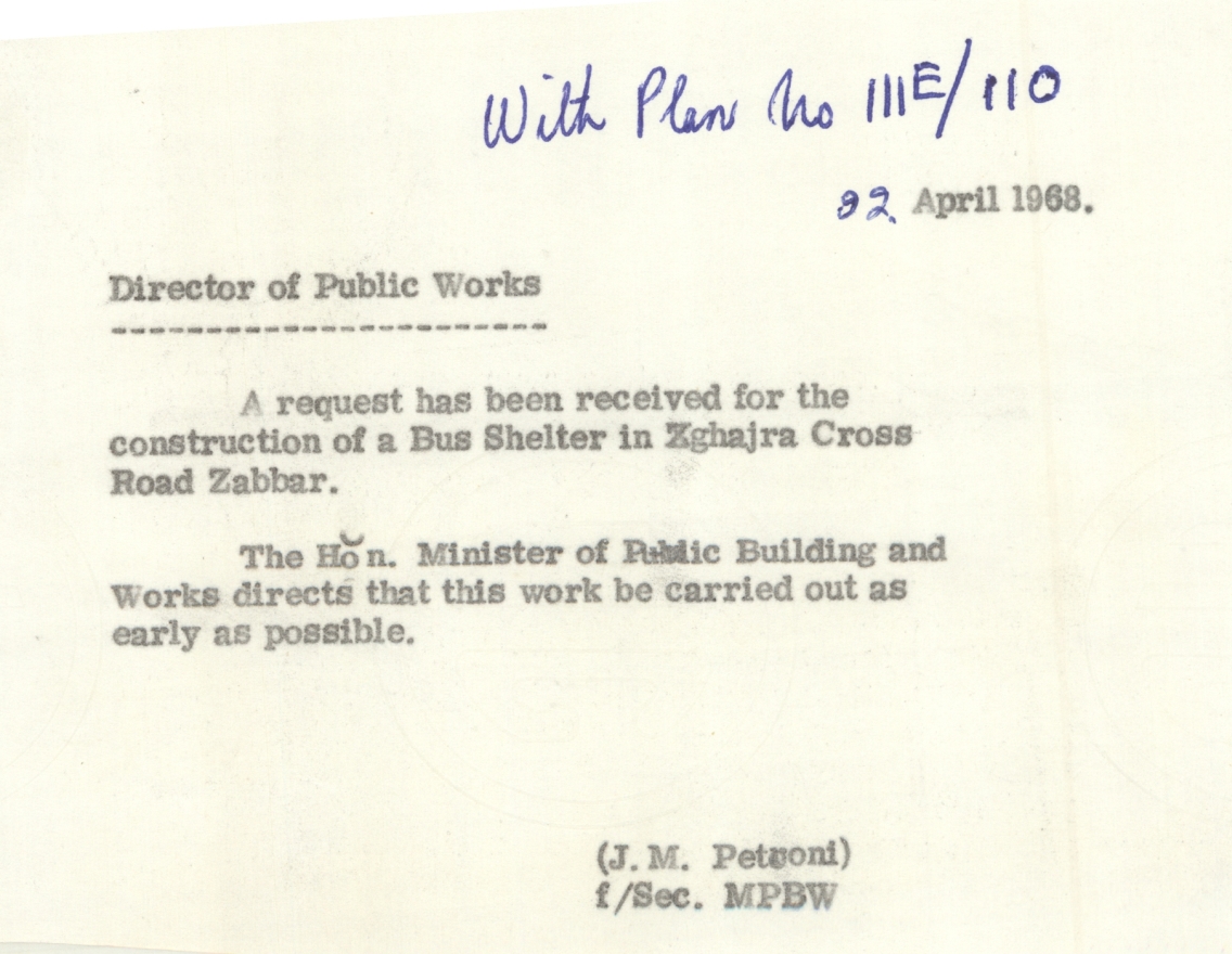 Note to Director of Public works to start construction of bus shekter in Zghajra Cross road in Zabbar