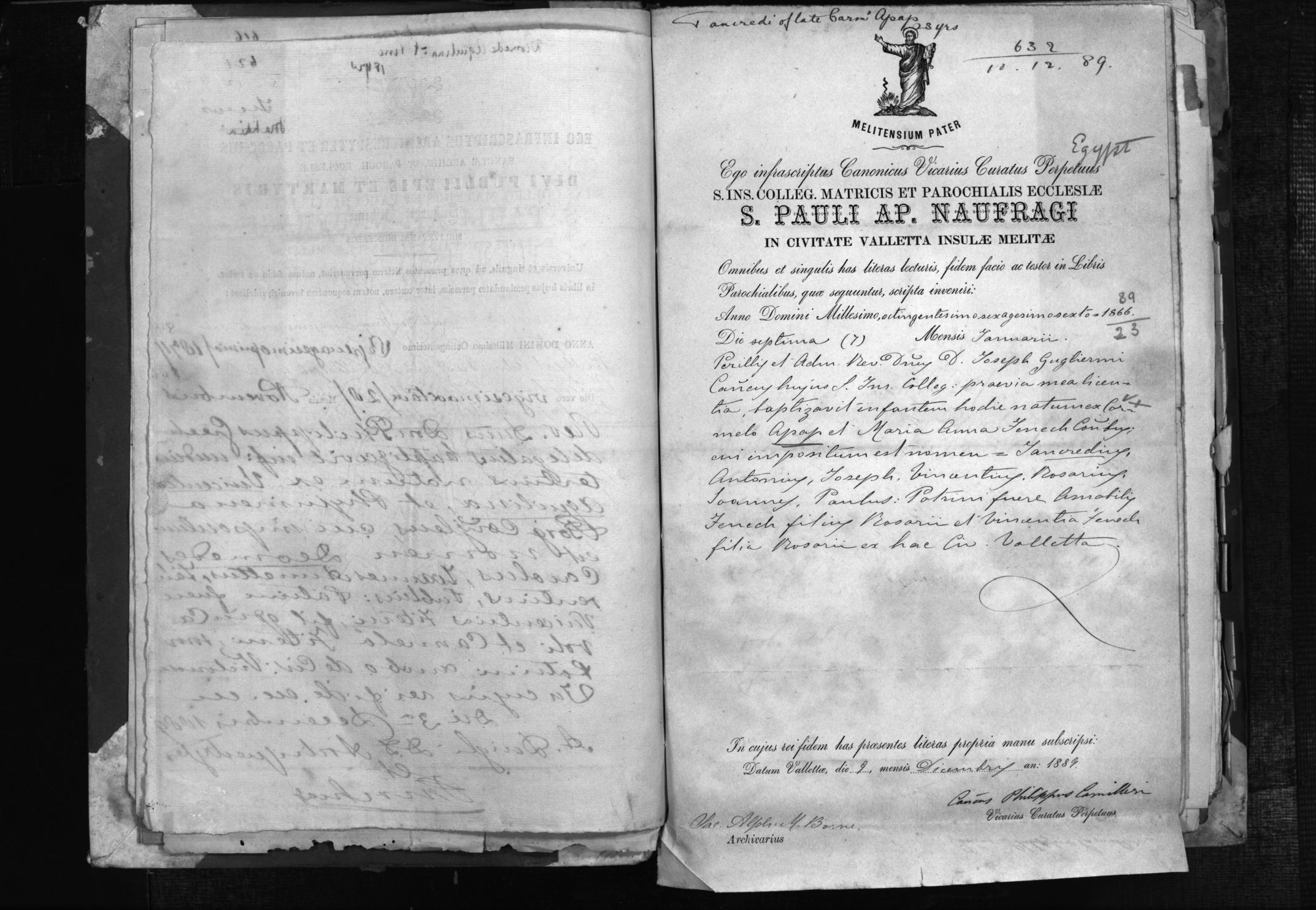 Son of the late Carmelo, DOB 07/01/1866, Age 23, Occupation not stated, Town, Village, Parish St. Paul Valletta, Destination Egypt, Remarks