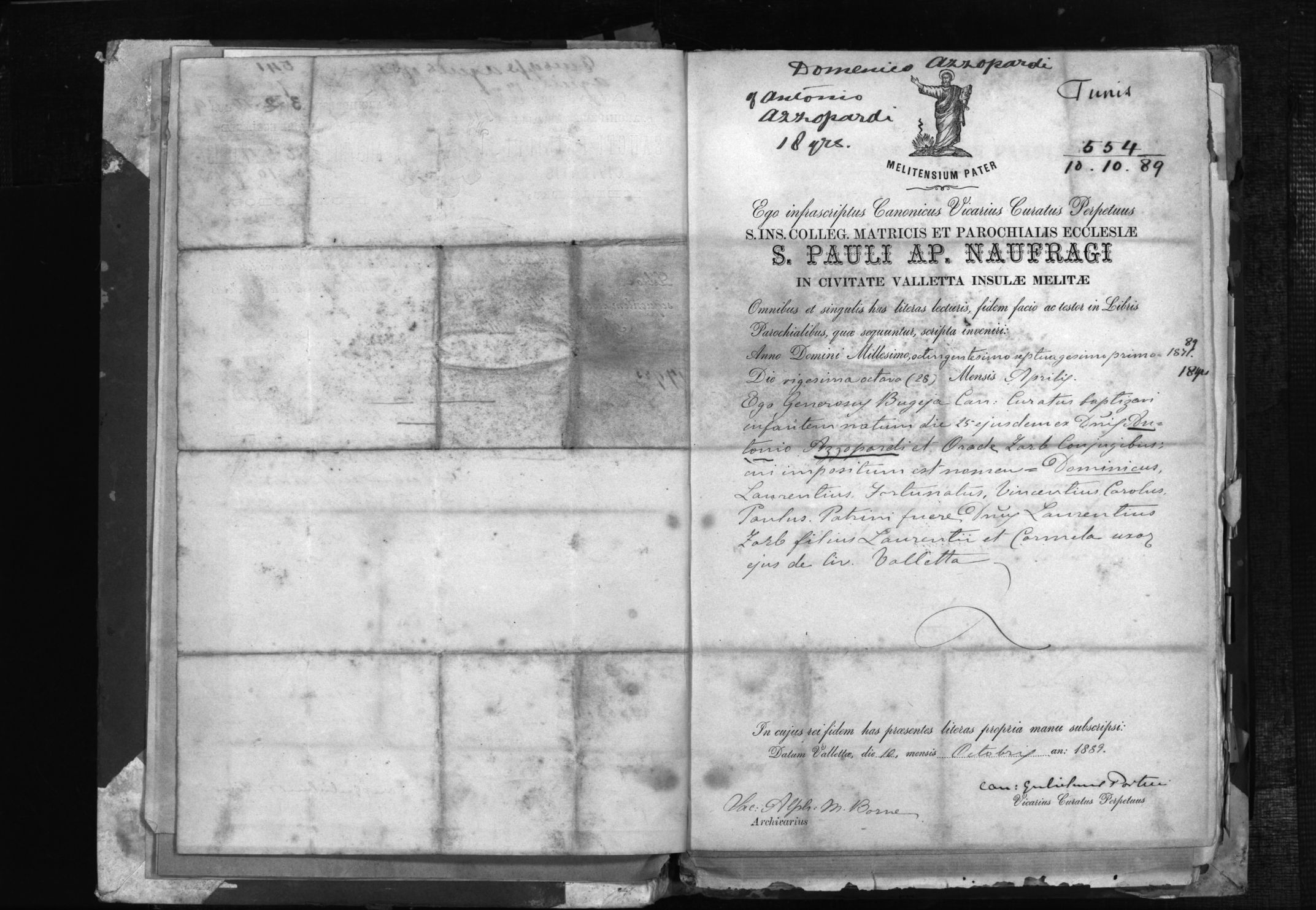 Son of Antonio, DOB 28/04/1871, Age 18, Occupation not stated, Town, Village, Parish Valletta, Destination Tunis, Remarks