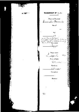 Son of - not stated; Age - 25; Occupation - not stated; Place of Birth - Vittoriosa; Residence - Vittoriosa; Destination - Egypt; Remarks - accomp by Giuseppe 7, Catarina 3, Giovanni 7m