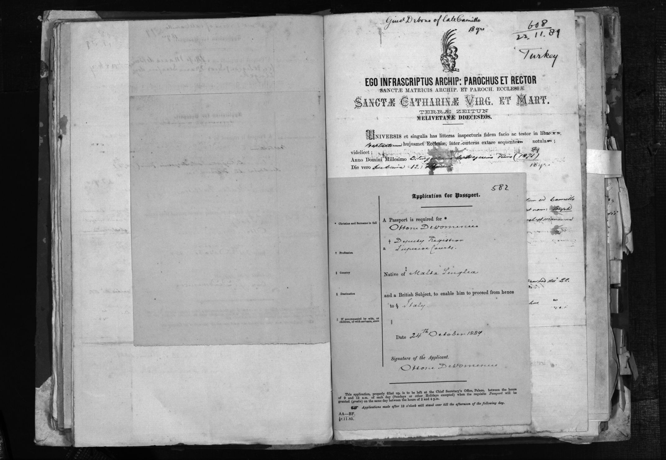 Son of not stated, DOB N/A, Age N/A, Occupation Deputy Registrar Superior Courts, Town, Village, Parish Senglea, Destination Italy, Remarks