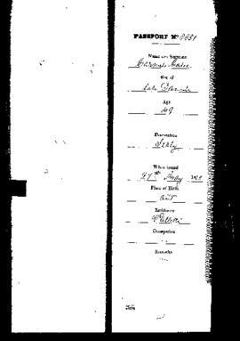 Son of - late Daniele; Age - 49; Occupation - not stated; Place of Birth - Valletta; Residence - Valletta; Destination - Italy; Remarks -