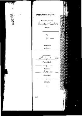 Son of - not stated; Age - 70; Occupation - not stated; Place of Birth - Vittoriosa; Residence - Vittoriosa; Destination - Tunisia, Sfax; Remarks -