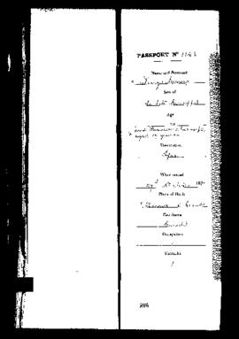 Son of - late Giuseppe; Age - 20; Occupation - not stated; Place of Birth - Zurrieq; Residence - Qrendi; Destination - Tunisia, Sfax; Remarks - accomp by wife Francesca 19 born at Qrendi