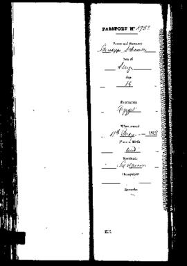 Son of - Luigi; Age - 19; Occupation - not stated; Place of Birth - Cospicua; Residence - Cospicua; Destination - Egypt; Remarks -