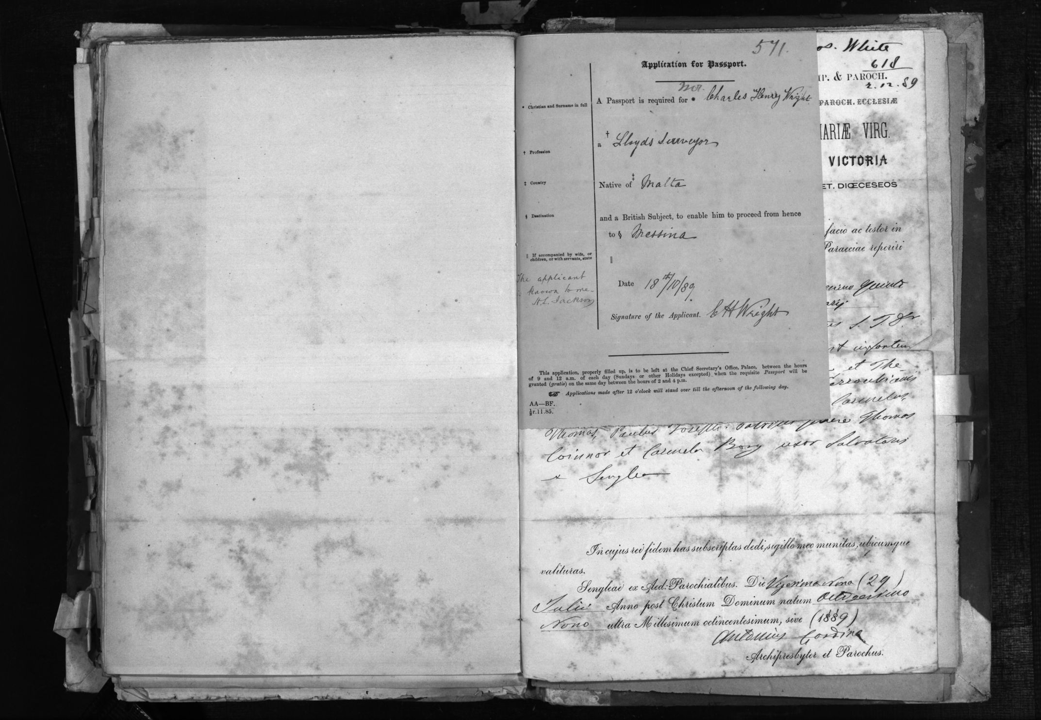 Son of not stated, DOB N/A, Age N/A, Occupation Lloyds Surveyor, Town, Village, Parish Malta, Destination Messina, Remarks