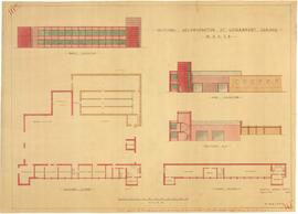 Plan, front and side elevations and section of the proposed additional accomodation at government garage in Marsa. This plan was used to accompany notice to call for tenders in file PW 1769-56