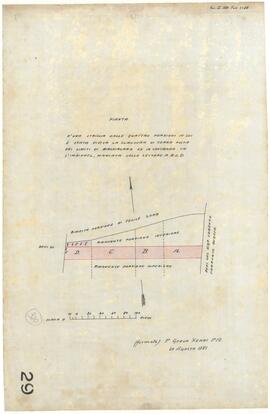 Plan of four strips of land into which a larger portion was divided at the limits of Birchircara in l Imriehel road, marked with the letters A, B, C, D.