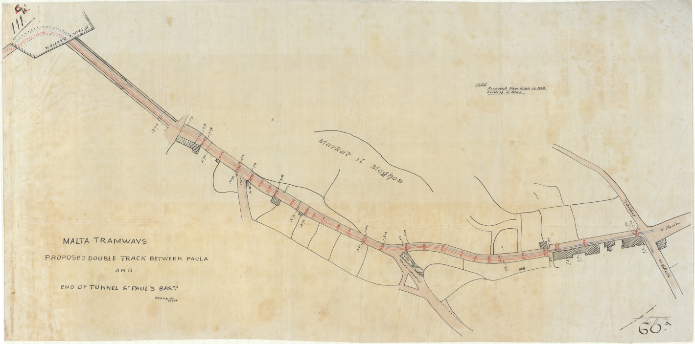 Plan of proposed double track showing in red line between Paula and end of tunnel St Paul Bastion.