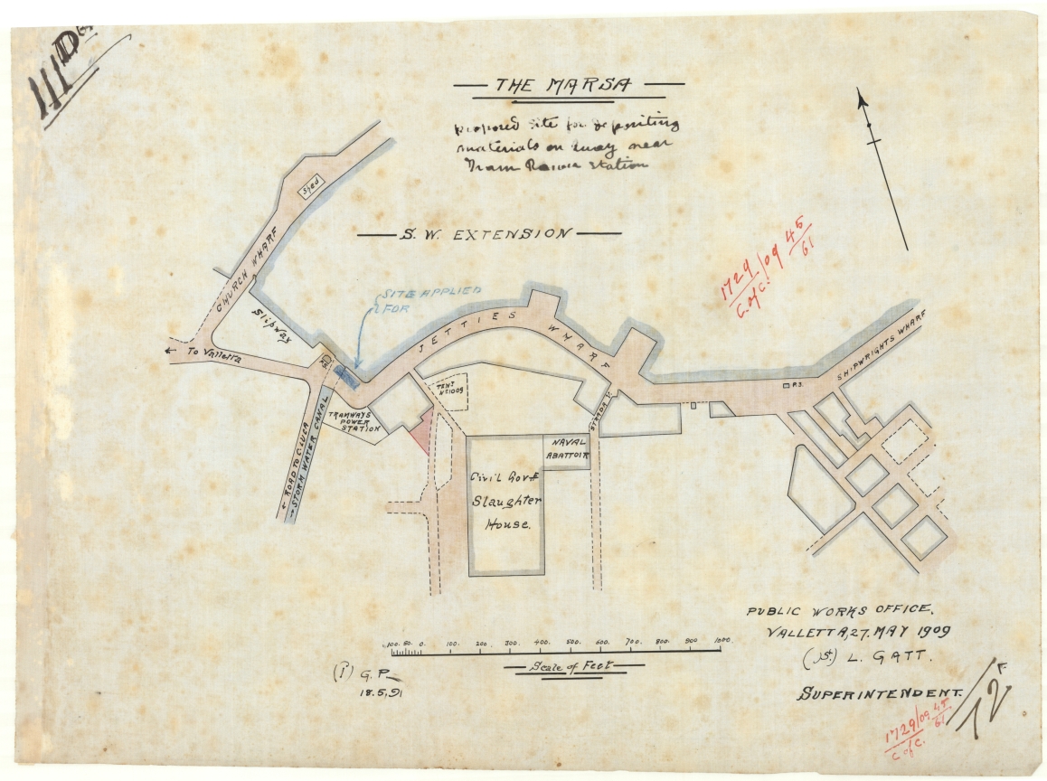 Plan of proposed site for depositing materials on railway near tram railway station in Marsa