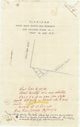 Plan of room near Porte des Bombes in Floriana - Old railway room No. 1 tenement No 1281 HC - leased out to Carmel Micallef