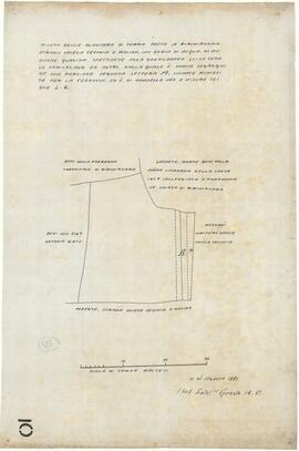 Item 63031 - Plan of the portion of land in Birchircara, Old Church street and windmill with water reservoir, of poor quality, owned by lady Luisa Strickland and others, part of which has been segregated and shown with the letter A, requested by the trains sized 1 mondello and six sives.