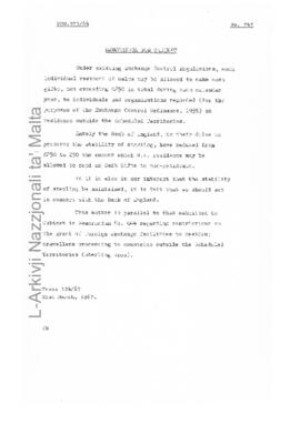 Unità documentaria 0747 - Reduction in the ammount of cash gifts allowed to outside the Sterling Area