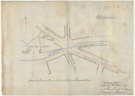 Site plan of the Railway Station, Birkirkara showing railway line in blue and tramway line in red.