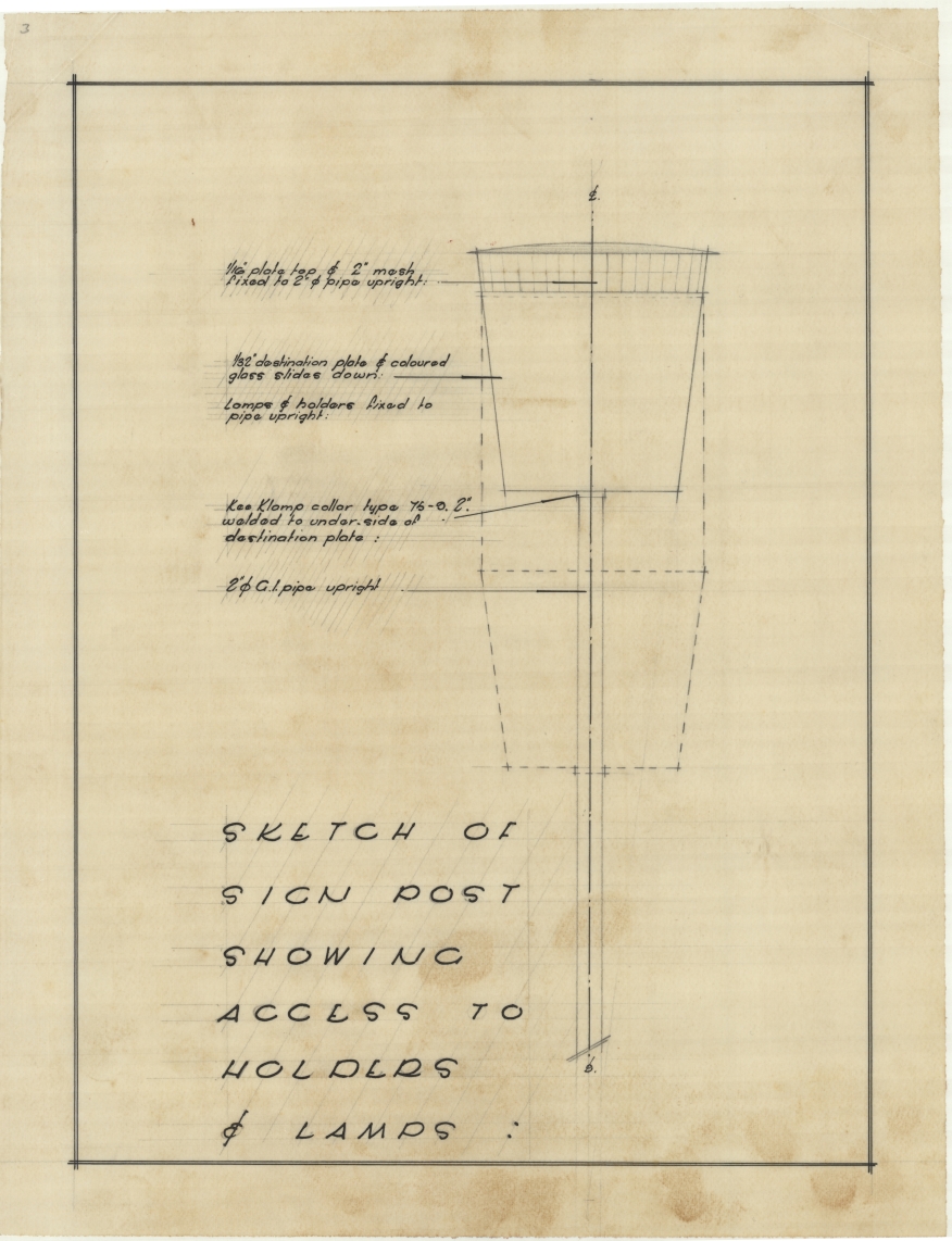 Item 63735 - Sketch of sign post showing access to holdings and lamps.