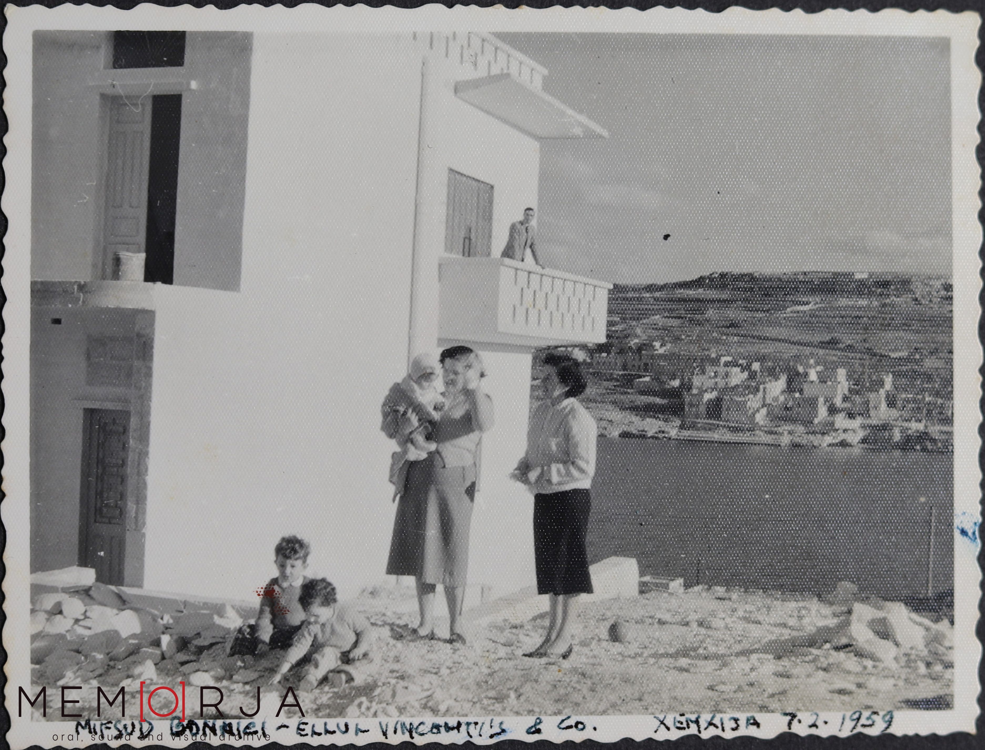 Applying the finishing touches to a summer residence in Xemxija. This house was owned by the Ellul-Vincenti's, friends of Maurice and Loulou Mifsud Bonnici (First from right). Mark Mifsud Bonnici is first from left.