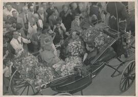 Archbishop Michael Gonzi riding through the crowds at Lija. This photograph was taken while his carriage was passing by the local police station.