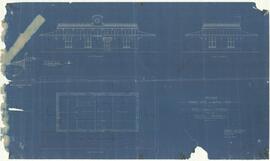 Item 62937 - Blueprint of proposed tramway office waiting room and Porta Reale Terminus - Section plan; front and side elevations.