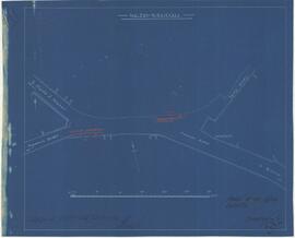 Blueprint showing in red the proposed position of footpath and bus stages in Naxxar road in Birkirkara.
