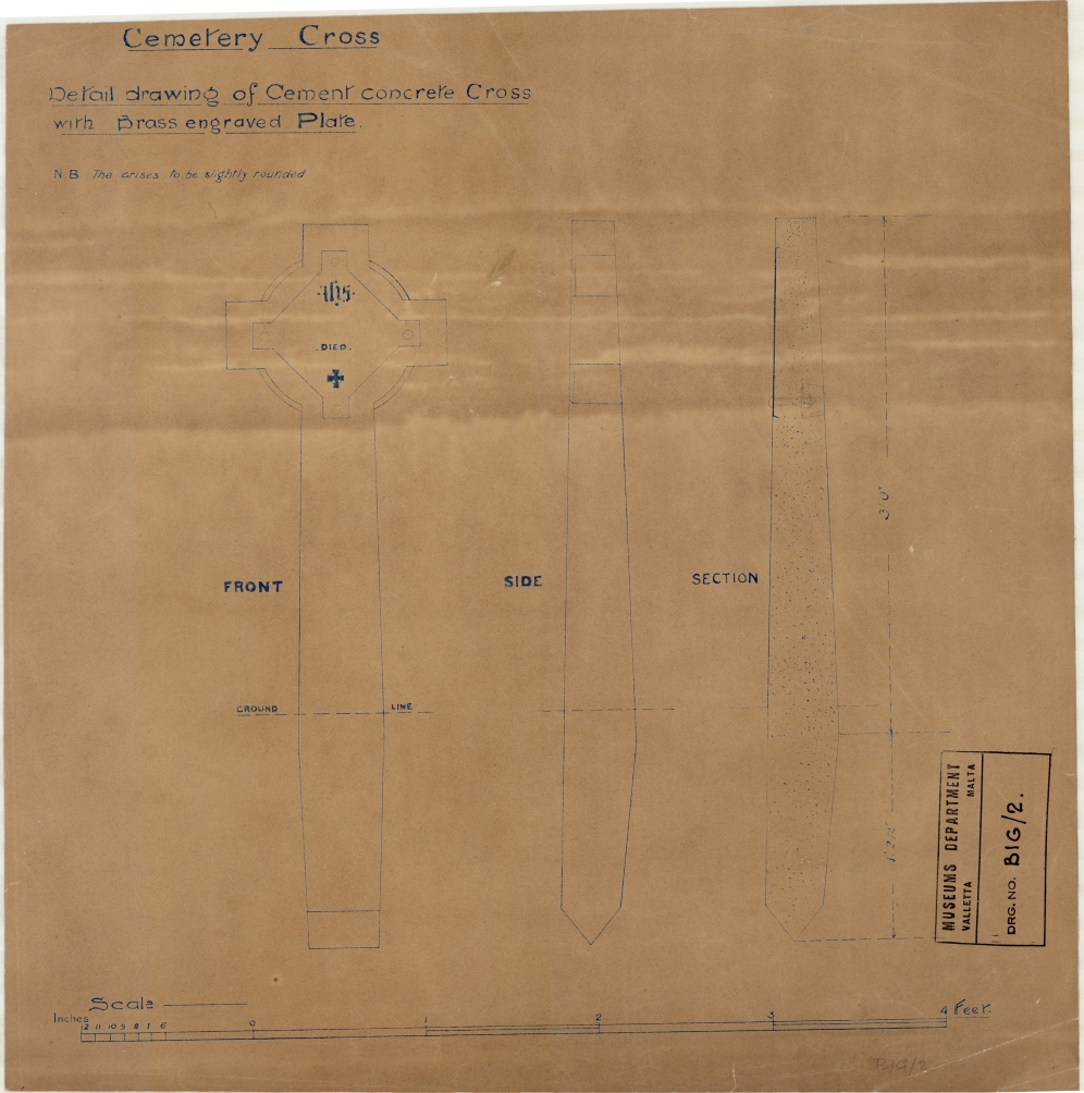 Detail Drawing of Cement concrete Cross - with Brass engraved Plate